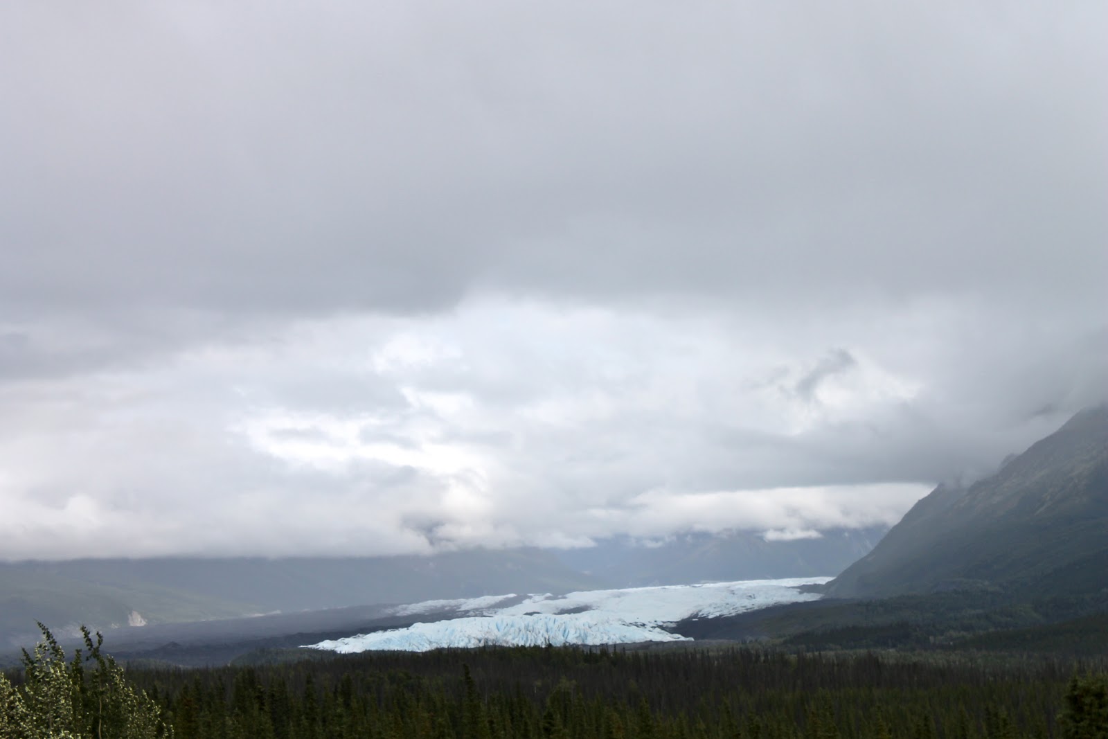 Portage Glacier. We decided to head back toward Anchorage and take the turn to our first up close glacier sighting. We passed many pools of water and then saw the glacier below: